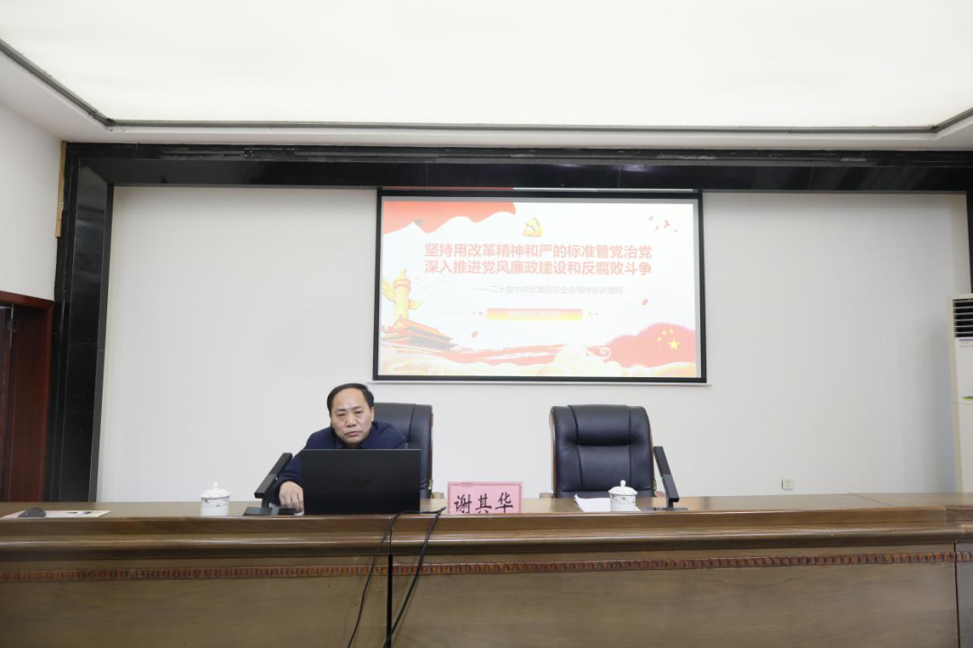 會上,縣紀委派駐財政局紀檢監察組組長謝其華以《堅持用改革精神和嚴的標準管黨治黨 深入推進黨風廉政建設和反腐敗斗爭》為題,緊扣二十屆中紀委四次全會精神,從深刻領會習近平總書記在全會上的重要講話精神、系統學習李希同志對縱深推進正風肅紀反腐所作部署、認真讀透落實中央紀委四次全會精神的相關要求3個方面,為全體干部職工開展專題宣講。宣講全面系統、內涵豐富、脈絡清晰、重點突出,既有理論高度,又有實踐深度,對于黨員干部學深悟透、對標落實全會各項決策部署具有很強的指導意義。