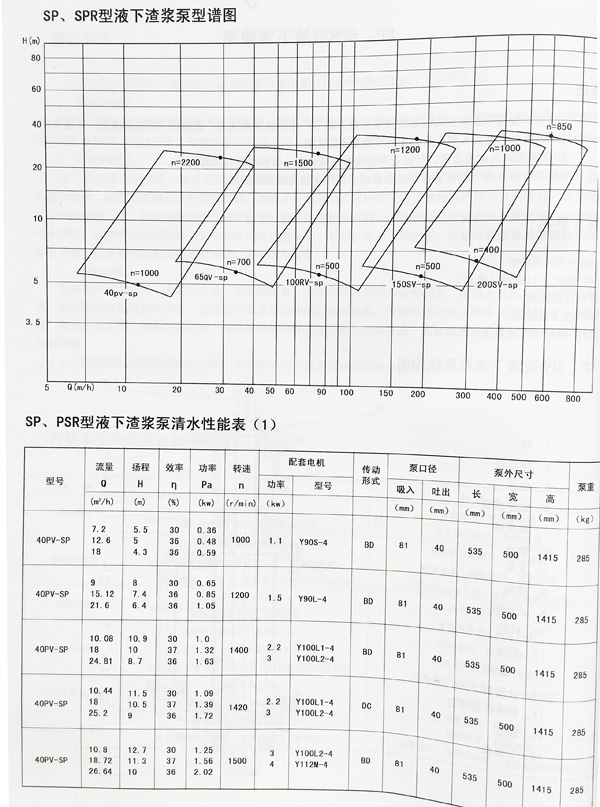 SP(R)型為立式離心渣漿泵,一般浸入池內工作。SP型過流部件為特種高耐磨金屬材質適用輸送磨蝕性渣漿。SPR型過流部件及軸襯有耐腐蝕的橡膠,適于輸送腐蝕性渣漿。SP(R)型泵適用于冶金、礦山、煤炭、電力、建材等行業。用戶可按對水力性能要求選擇相應轉速,達到節能目的。